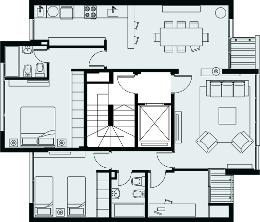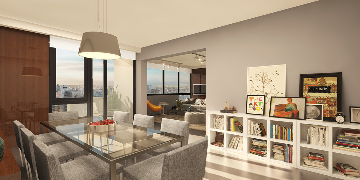 Unidades de aproximadamente 100 m2 a la calle, 2 habitaciones + Studio o tercera habitación, una de ellas en suite, cocina integrada con comedor diario, luminoso living y 2 balcones privados a la calle.