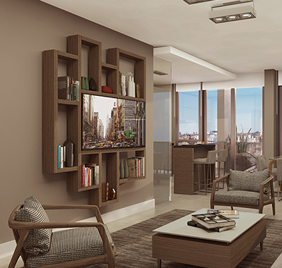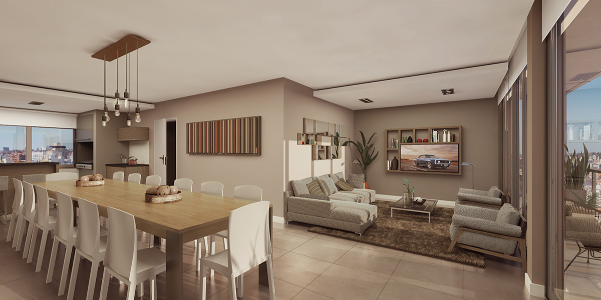 En el piso 10 se encuentran los amenities, que incluyen un quincho de su uso común, gimnasio y un laundry pensando de forma de darle al edificio un sobrio remate.