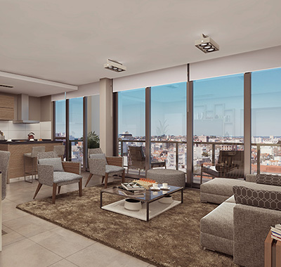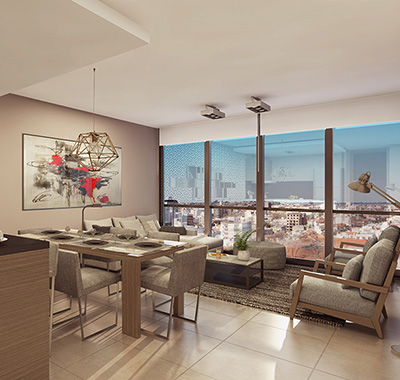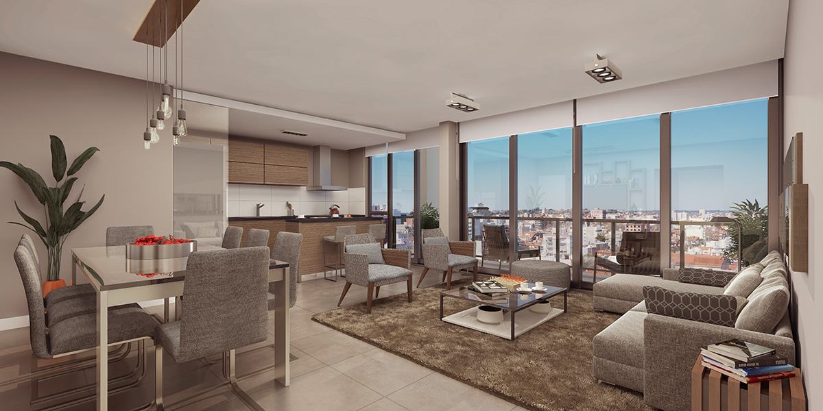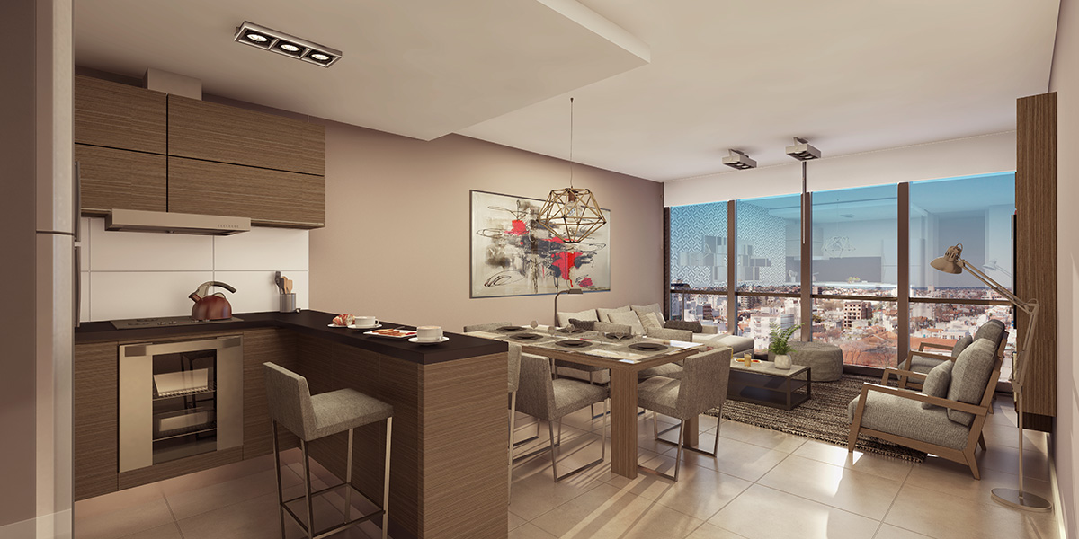 Carpinterías de aluminio anodizado con doble vidrio, dormitorios en suite, calefacción por loza radiante, amplias cocinas integradas, pisos de porcelanato. Cocinas y placares de calidad y diseño.